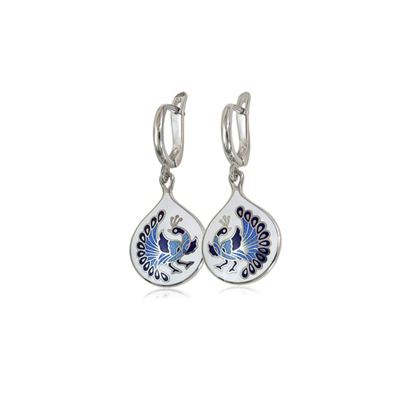 Нежные серьги в бело-голубой цветовой гамме напоминают нам давно знакомую гжель, вот только основой для художественной росписи выступил не фарфор, а серебро 925 пробы. А привычная глазурь заменена на высочайшей прочности горячую эмаль, которой и раскрашены чудо-птицы. Очаровательные сережки ручной работы «По зернышку» наверняка понравятся ценительницам традиций.