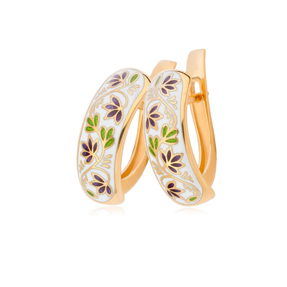 Серьги от ювелирной студии FILLART – изысканное украшение. Каждая пара изготавливается вручную и обладает уникальным дизайном. В своей работе наши мастера используют только горячую эмаль, которая не тускнеет и не мутнеет со временем. Золотое покрытие придаёт изделию мягкий блеск и защищает серебро от потемнения.