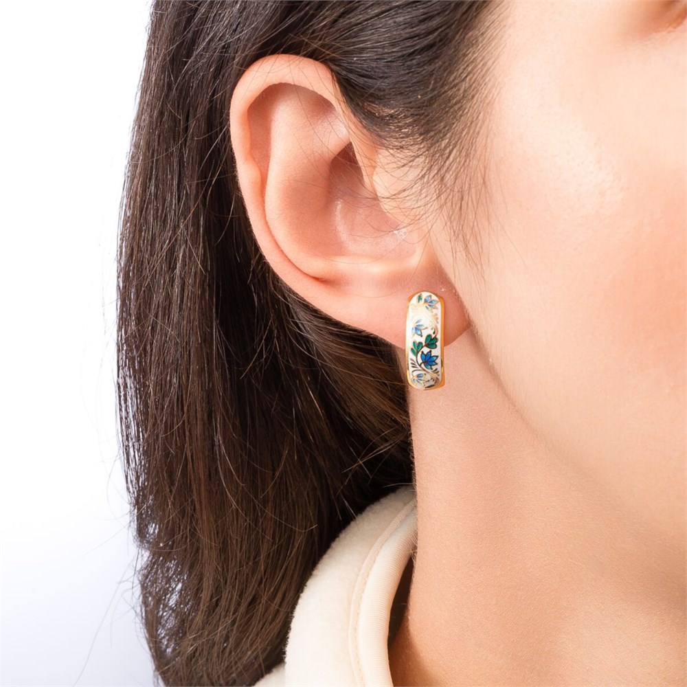 Серьги от ювелирной студии FILLART – изысканное украшение. Каждая пара изготавливается вручную и обладает уникальным дизайном. В своей работе наши мастера используют только горячую эмаль, которая не тускнеет и не мутнеет со временем. Золотое покрытие придаёт изделию мягкий блеск и защищает серебро от потемнения.
