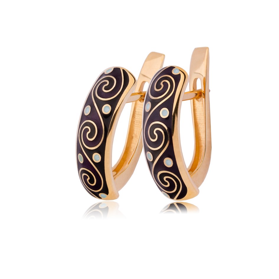 Стильные авторские серьги в этническом стиле с традиционным греческим орнаментом – меандром. Украшение выполнено в серебре 925* с золочением 999* по технологии горячего эмалирования. Миниатюрные белые вкрапления с золотой окантовкой гармонично дополняют дизайн. Модель выполнена вручную мастерами ювелирной компании FILLART.