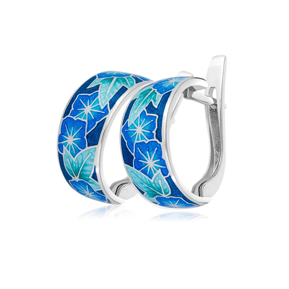 Серьги из коллекции «Ботаника» не оставят равнодушными любительниц ярких, эффектных деталей в своём образе. Чистые синие оттенки эмали гармонично сочетаются с серебряной основой, а глянцевая поверхность красиво блестит при любом освещении. Серьги изготовлены мастерами студии FILLART по индивидуальному дизайну из серебра 925 пробы.