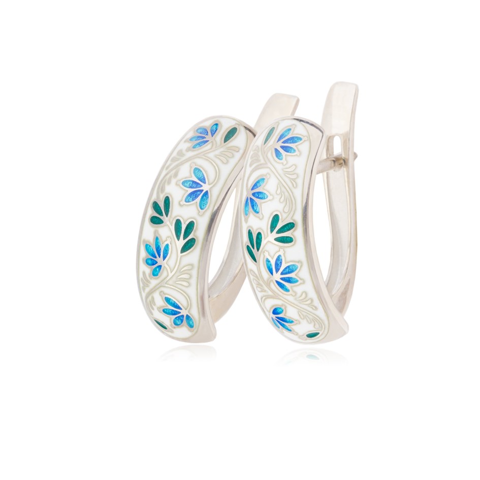 Эти изящные серьги-полукольца – поистине универсальный вариант для современных модниц. Лаконичный дизайн в классической бело-синей гамме позволяет носить их на учёбу или в офис, не опасаясь за уместность украшения. Впрочем, и в сочетании с коктейльным платьем такие серьги будут смотреться достойно и элегантно.