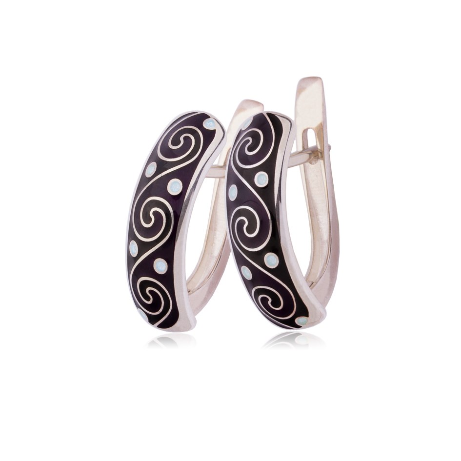 Серьги-полукольца «Меандр» выполнены в серебре 925* по технологии горячего эмалирования.