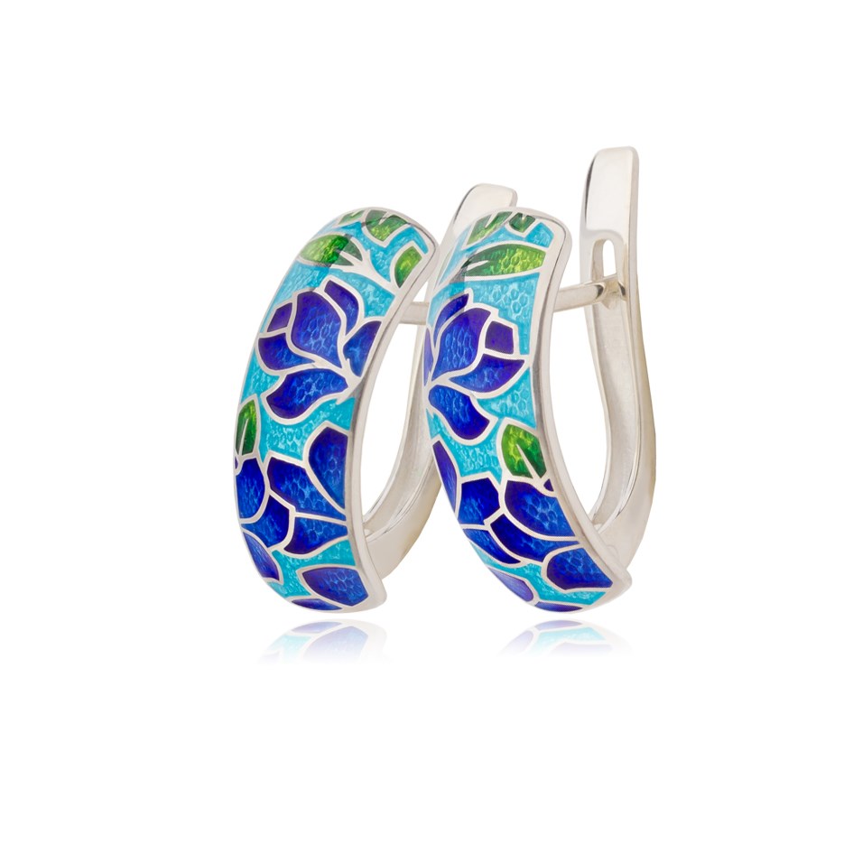Серьги выполнены из серебра 925 пробы по технологии горячего эмалирования.