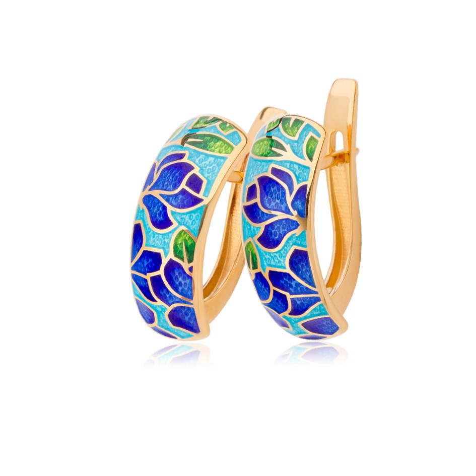 Серьги выполнены из серебра 925 пробы с золочением 999* по технологии горячего эмалирования.