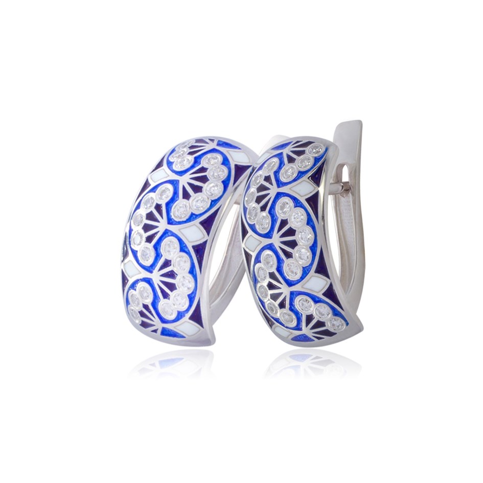 Эти яркие, эффектные серьги в восточном стиле станут изюминкой любого наряда – и повседневного, и делового, и вечернего. Несмотря на объём, они очень лёгкие и практически не ощутимы в носке. Серьги выполнены из серебра 925 пробы, украшены горячей эмалью и фианитами.