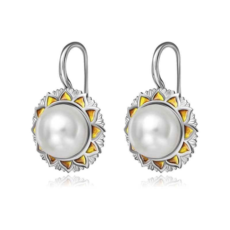 Серьги выполнены из серебра 925 пробы по технологии горячего эмалирования с синтетическом жемчугом.
