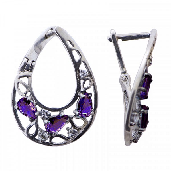 Очаровательные серьги с 14 вставками фианитов- простые, но при этом интересные своей формой и переплетением серебряных узоров.