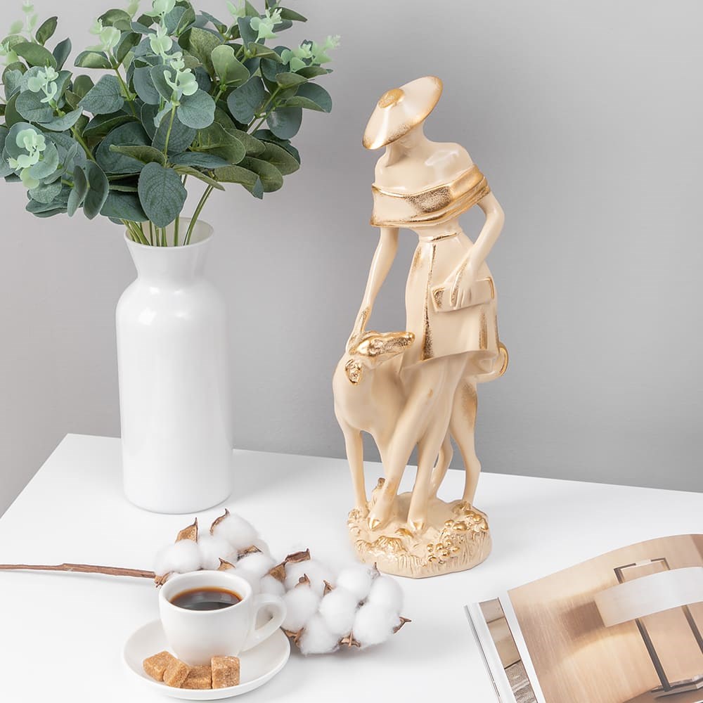 Скульптура Девушка с собакой Айвори, арт. Bo22675_3936