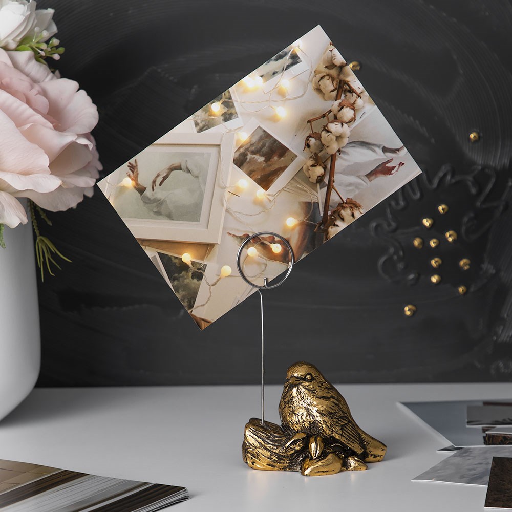 Детально продуманная, Статуэтка из мрамора BOGACHO Птичка Зарничка бронзового цвета с держателем для фотографий/записок, изготовлена из натурального коелгинского мрамора, а затем отшлифована и патинирована вручную кропотливыми руками мастеров BOGACHO. Статуэтка станет отличным подарком для любимых родных или близких друзей. Оживите свой дизайн и добавьте в него нотки романтизма и изящества вместе со статуэткой BOGACHO.