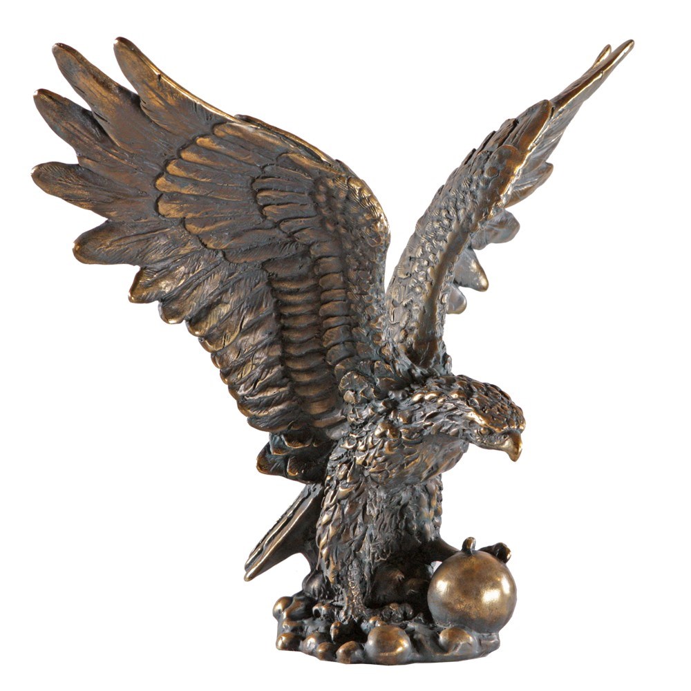 Каждый из нас - победитель На скольких гербах разных городов и стран красуется изображение этой гордой птицы – сложно сосчитать! И это благодаря острому зрению, царственному внешнему виду и величественному оперению. Орёл, без сомнений, вызывает восхищение. Он символизирует силу духа, мощь и волю к победе, помогая поверить в себя тем, кто стремится добиться своих целей – возможно, непростых, но возвышенных и удивительных! И могущественный орёл помогает раскрыть в себе эти потрясающие качества. Зоркий, как орел Выражение «орлиное зрение» известно всем.Паря в небе, орел может увидеть свою добычу, маленькую мышку, с высоты 3000 метров. Угол обзора у орла составляет 275 градусов: он видит не только то, что находится впереди с сбоку, но и то, что сзади! Статуэтка орла наделяет своего владельца такой же способностью чётко видеть полезные возможности и избегать неудач в карьере, творчестве и личной жизни. Внимательная и мудрая птица поможет Вам «поймать» самые привлекательные шансы! Статуэтка выполнена из благородного материала – литьевого мрамора, вручную обработана в технике патинирование.