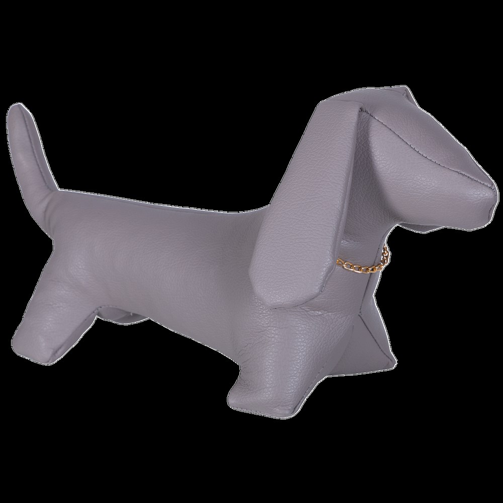 Стоппер BOGACHO – это оригинальный и стильный элемент текстильного декора. Добавьте в интерьер своего пространства уют. Стоппер BOGACHO Такса Джулия серого цвета изготовлен из искусственной кожи и плотно набит холлофайбером и мраморной крошкой. Изделие предназначено для удержания лёгких межкомнатных дверей.