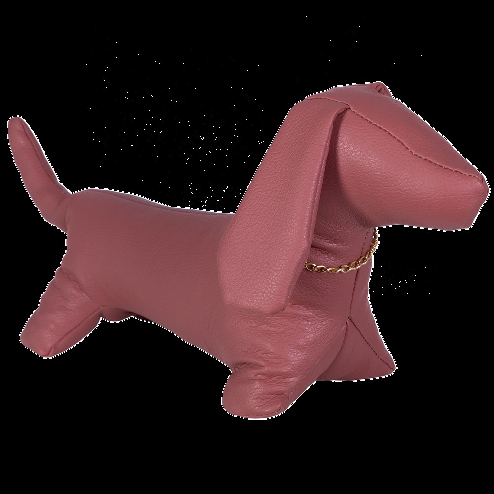 Стоппер BOGACHO – это оригинальный и стильный элемент текстильного декора. Добавьте в интерьер своего пространства уют. Стоппер BOGACHO Такса Джулия розового цвета изготовлен из искусственной кожи и плотно набит холлофайбером и мраморной крошкой. Изделие предназначено для удержания лёгких межкомнатных дверей.