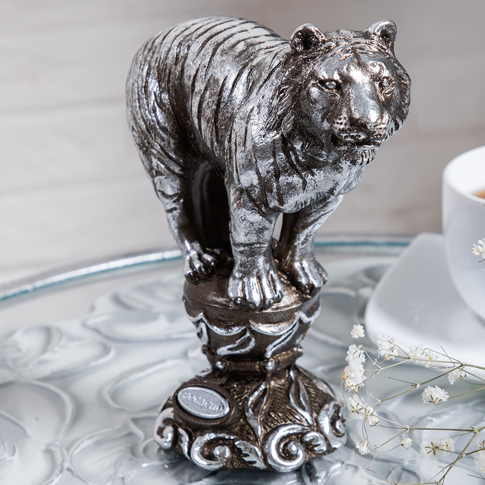 Статуэтка из литьевого мрамора Тигр Мейнард (скульптура) BOGACHO. Символом наступившего года по Восточному календарю является Голубой водяной Тигр. Яркий, изобилующий событиями и резкими повторами, именно таким будет год под знаком Тигра. Мраморная статуэтка украсит интерьер и принесет удачу. Издавна считается, что изображение тигра эффективно в борьбе против злых духов и символизирует величие и силу. Смело готовьте место на полках под наш сувенир.Фигурка высочайшего качества изготавливается вручную методом литья из мраморной крошки.