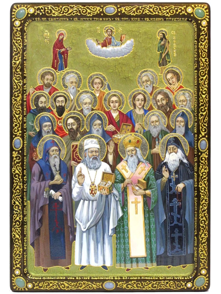 Святой Варсонофий, епископ Тверской, чудотворец Казанский, родился около 1495 года в Серпухове. В юности он 3 года провел в татарском плену, где выучил язык и обычаи. После освобождения принял постриг. В 1555 году был направлен в Казань, где основал Преображенский монастырь и активно проповедовал среди татар. В 1567 году стал епископом Тверским, но из-за преследований опричнины и по старости в 1571 году удалился на покой в свою казанскую обитель, где и скончался в 1576 году. Его мощи были обретены нетленными в 1595 году. Дни памяти: 24 апреля, 17 октября.