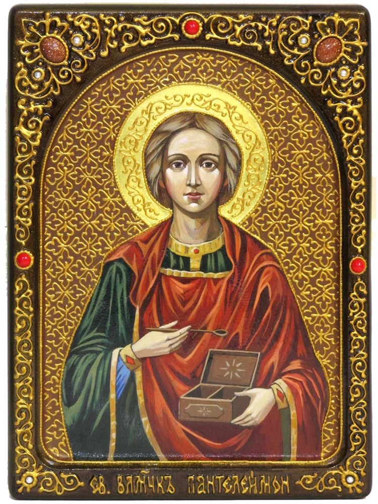 Живописная икона Святой Великомученик и Целитель Пантелеймон на кипарисе 21х29 аналойная, арт. RTI-852.Ак