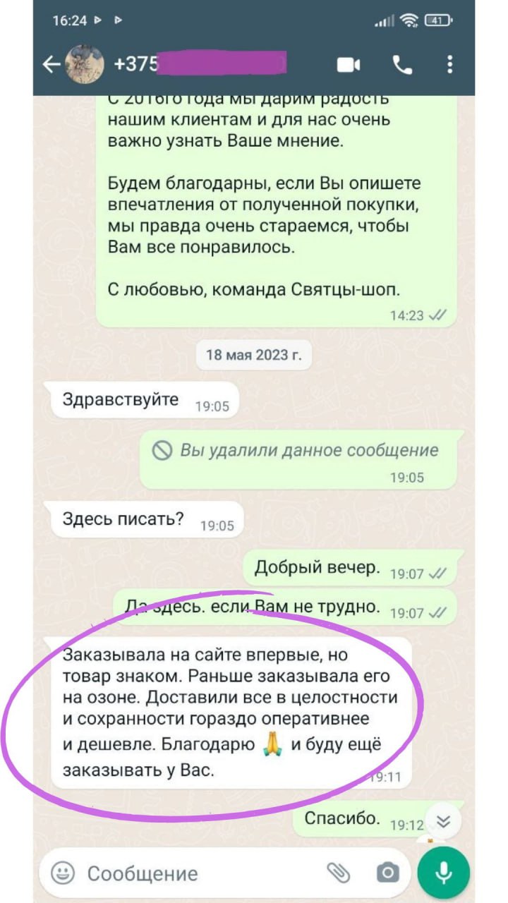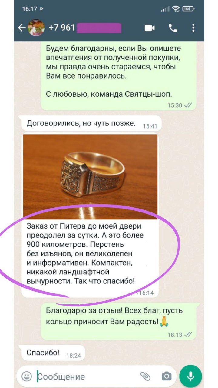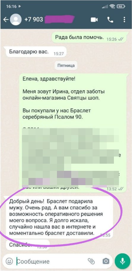 Спасибо большое команде Святцы-шоп за мой заказ!!! Позвонили,очень вежливо разговаривали,быстро организовали и доставили!!! Я заказала серебряные чётки красивые я довольна,СПАСИБО!!!